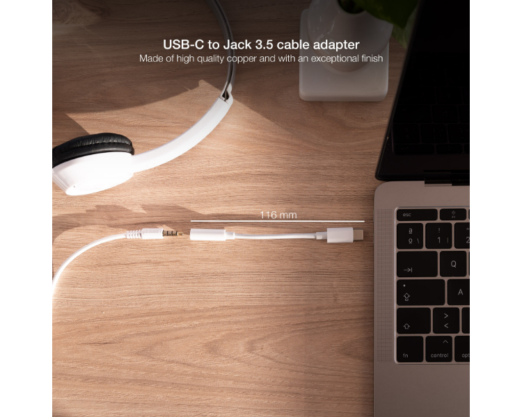 CABLE ADAPTADOR AUDIO USB-C/M A JACK 3.5/H 11CM BLANCO NANOCABLE