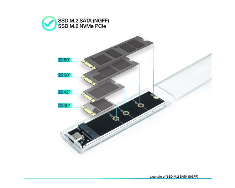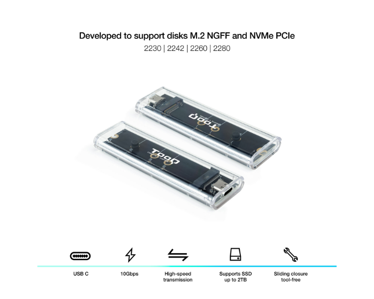 CAJA EXTERNA SSD M.2 NGFF/NVMe TRANSPARENTE RGB TOOQ